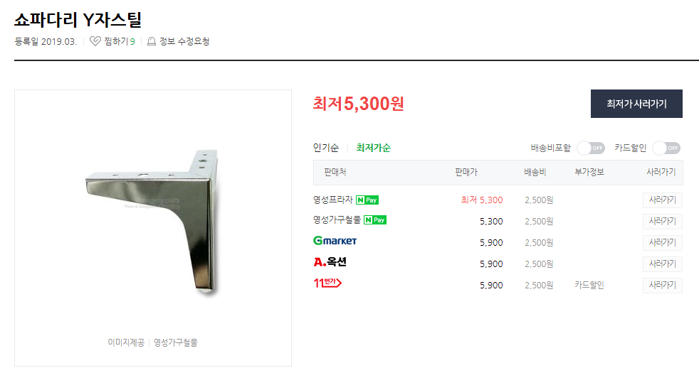 기존 소파 다리는 Y자 스틸이라는 이름으로 오픈마켓에서 판매되고 있습니다. 사이트에서 제공되는 제원으로는 135mm로 표시되고 있습니다.