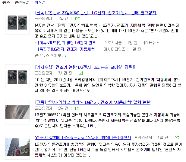 요즘 LG전자 건조기 콘덴서 자동세척 결함이 뜨거운 이슈입니다.