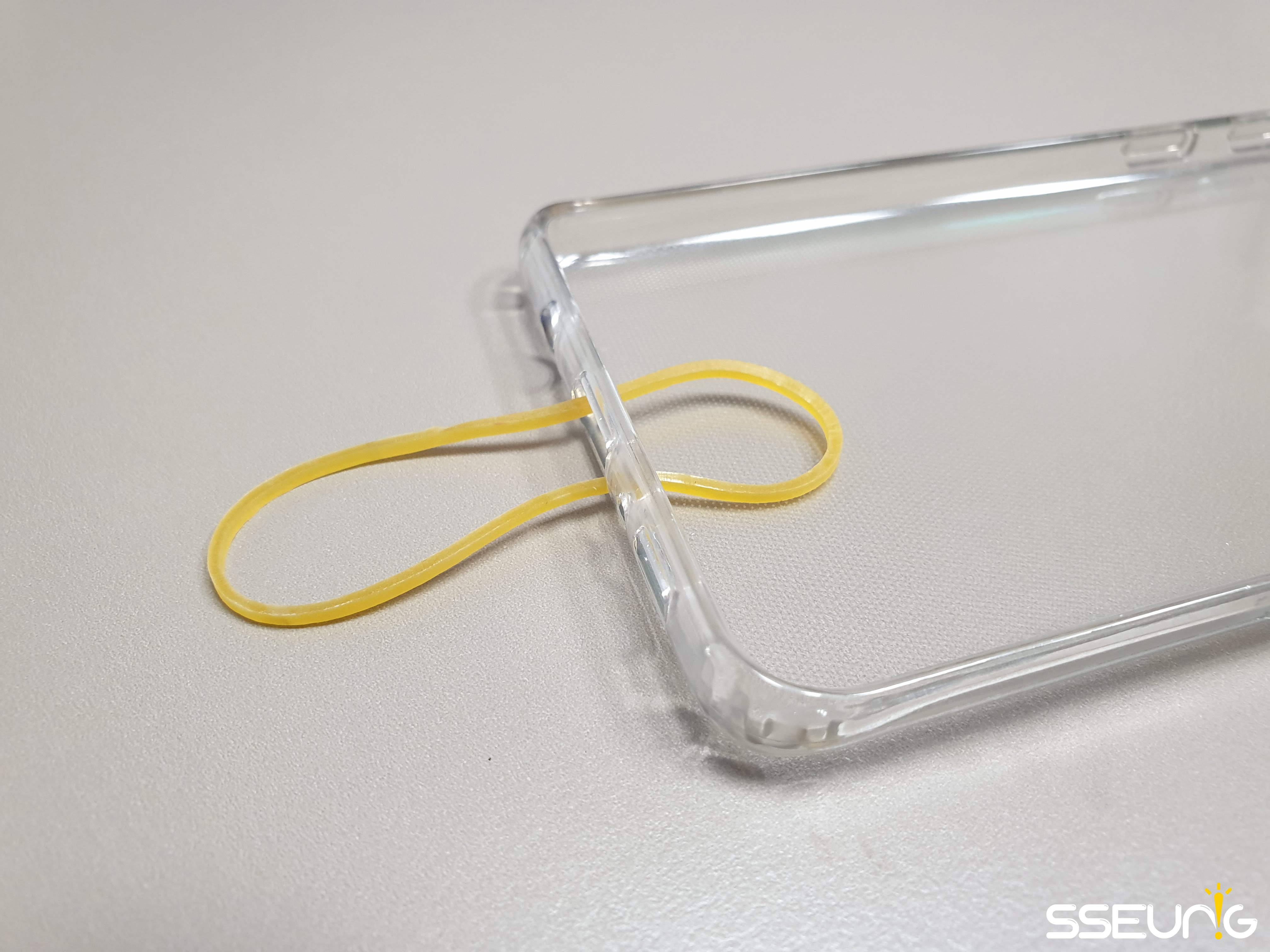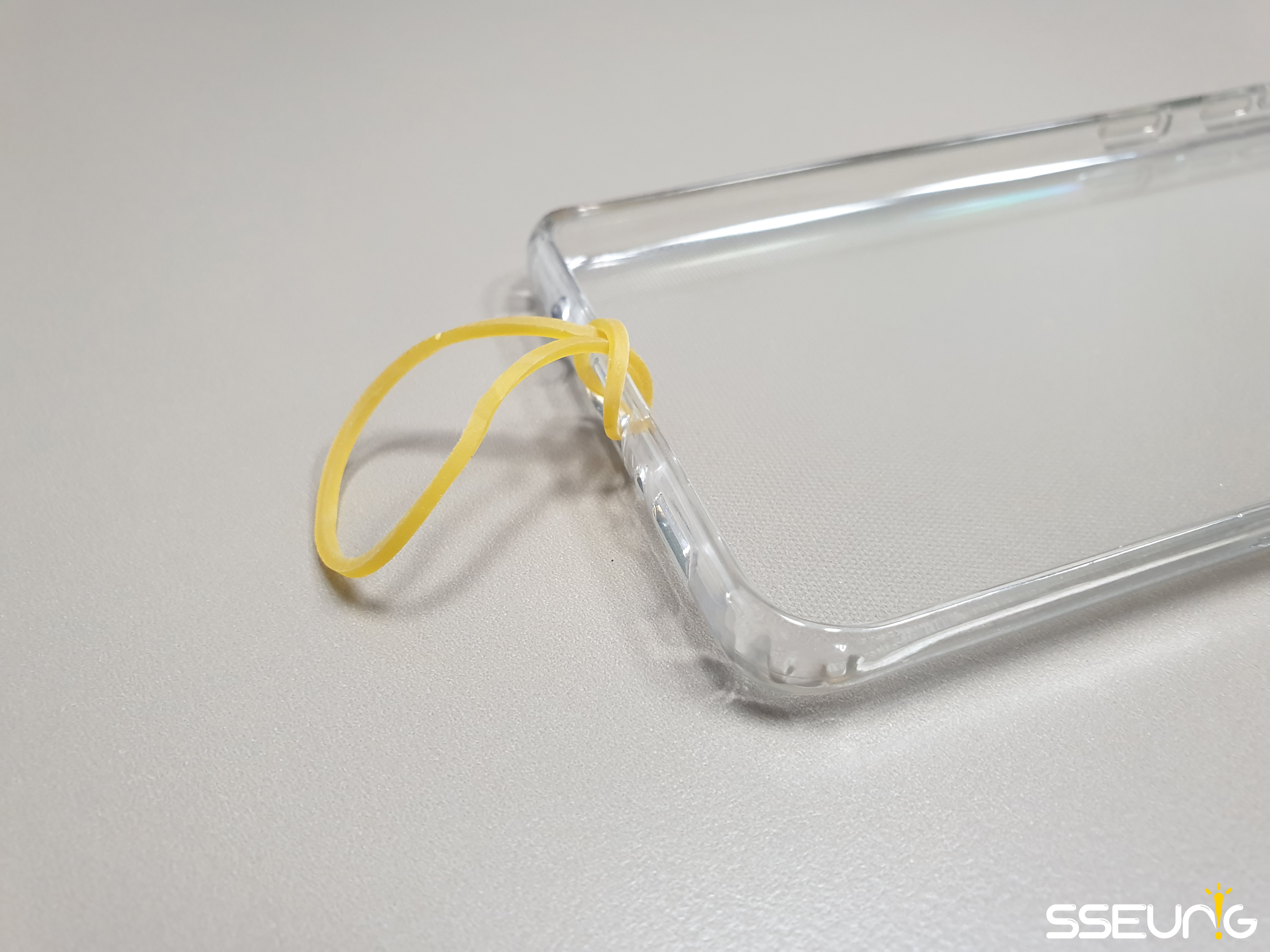 제가 준비한 준비물은 스마트폰, 스마트폰 케이스, 고무줄입니다. 잘 사용하지 않는 여분의 스마트폰과 자를 이용하여 테이프를 감는 방법도 있습니다만, 저는 고물줄을 이용한 방법으로 확인하였습니다.