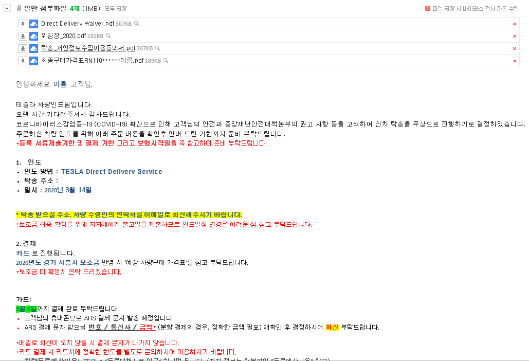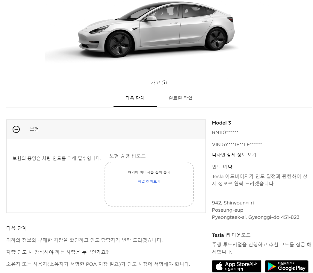 다행히 대리인이 인수가 아니라 위임장 등 원본 서류를 테슬라코리아에 전달하지 않아도 되었습니다.