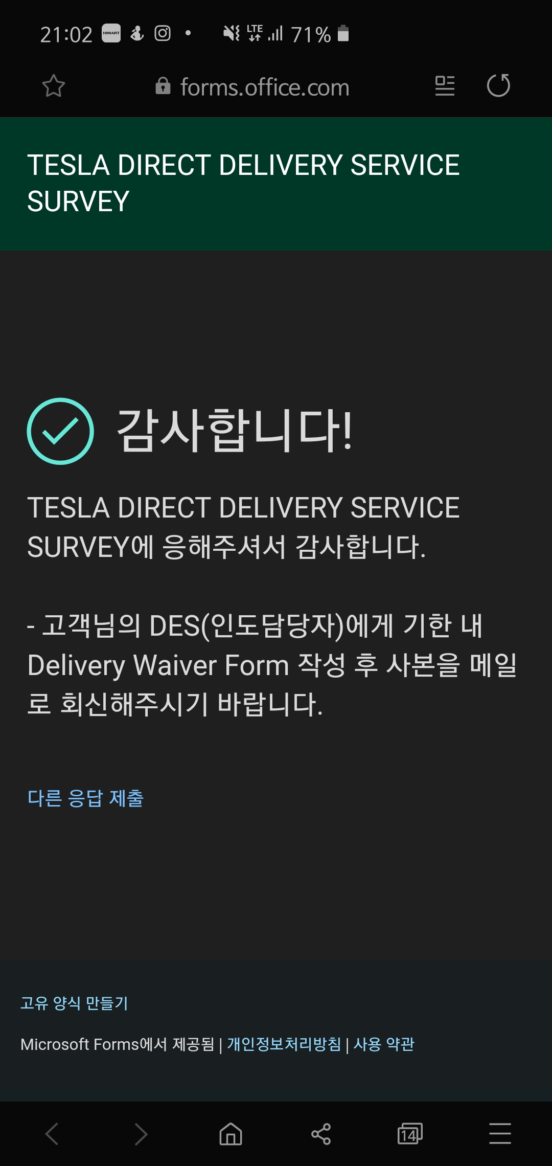 테슬라코리아는 항상 잘 까먹으니까 혹시나 하는 마음에 설문조사도 진행하기로 했습니다.