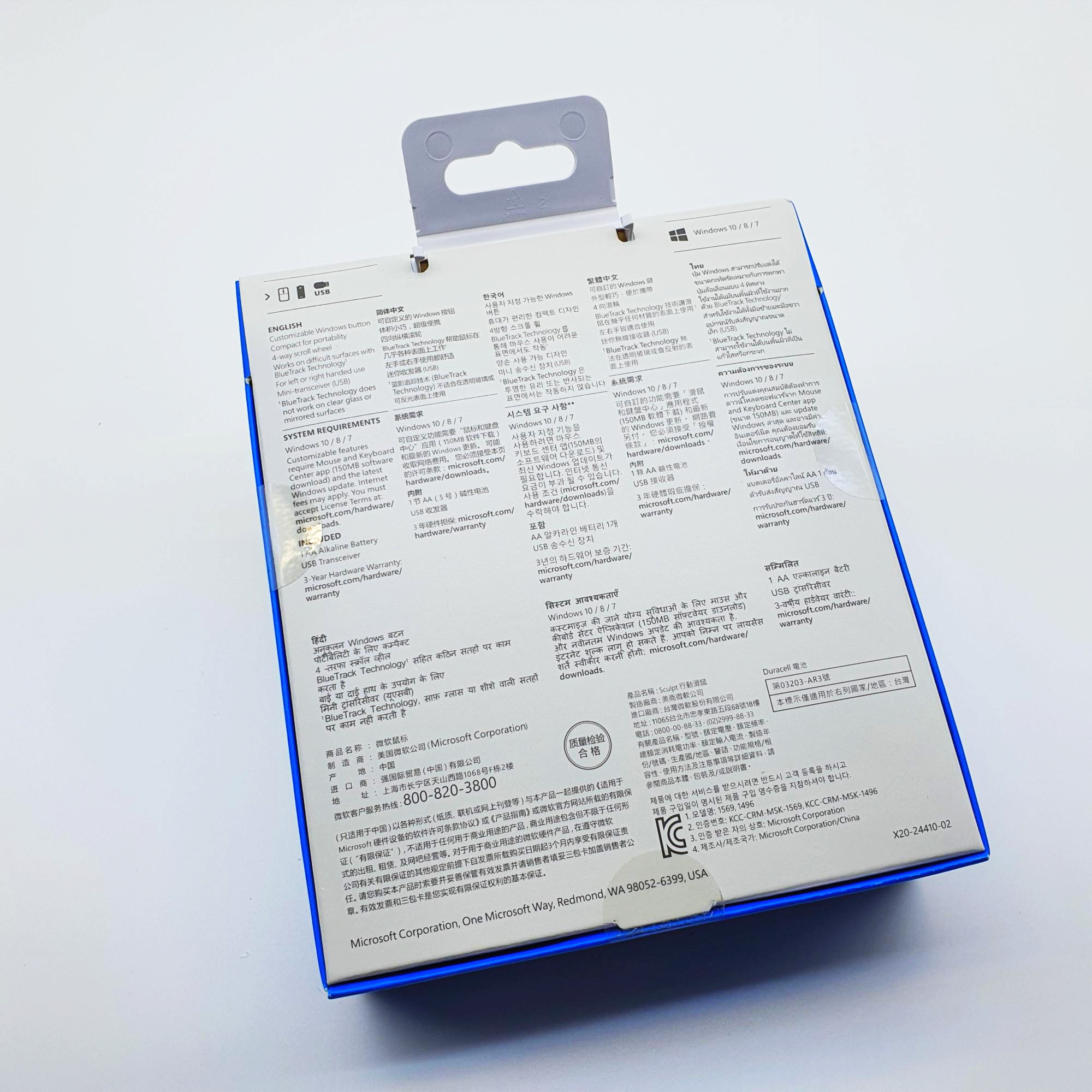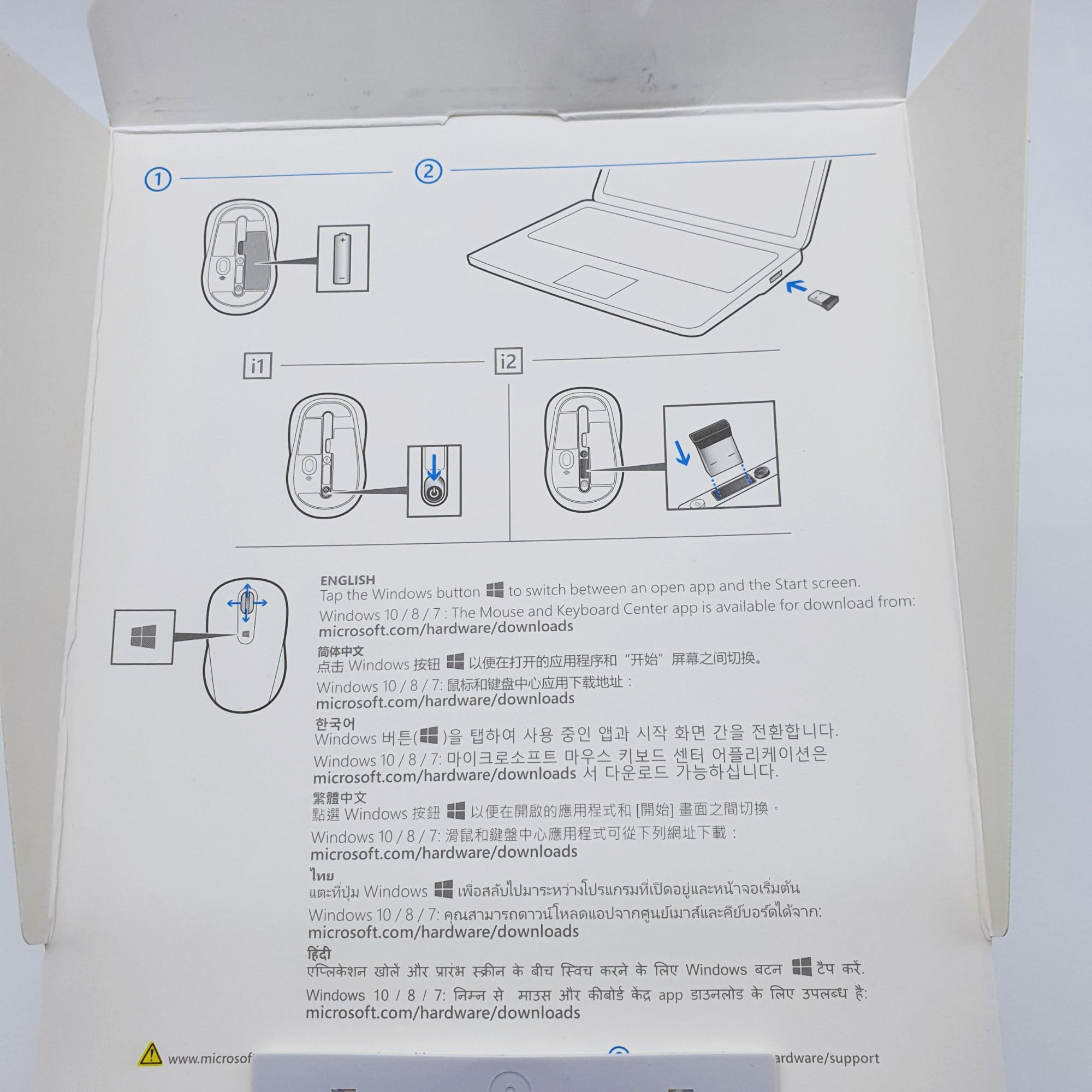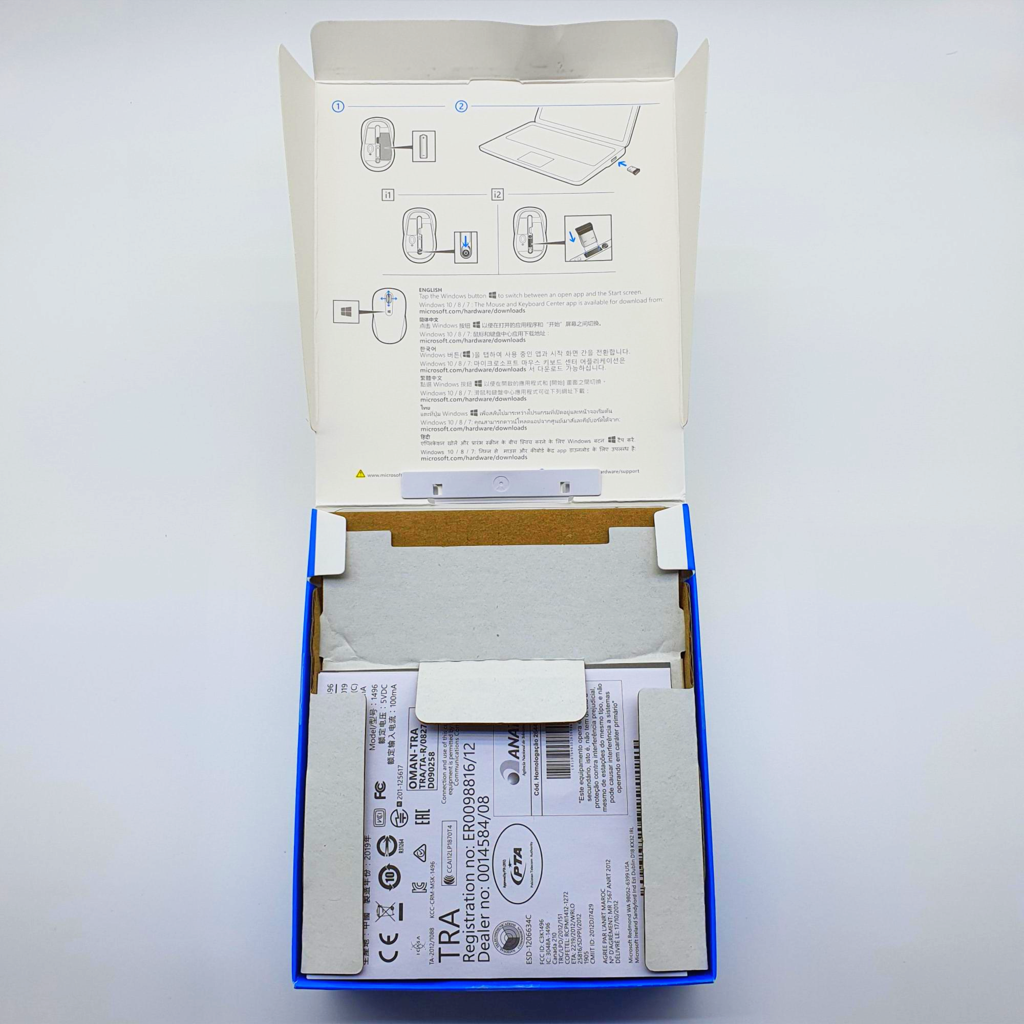 제품 외관은 마이크로소프트 마우스 본체와 수신기가 한눈에 보이도록 되어있습니다.