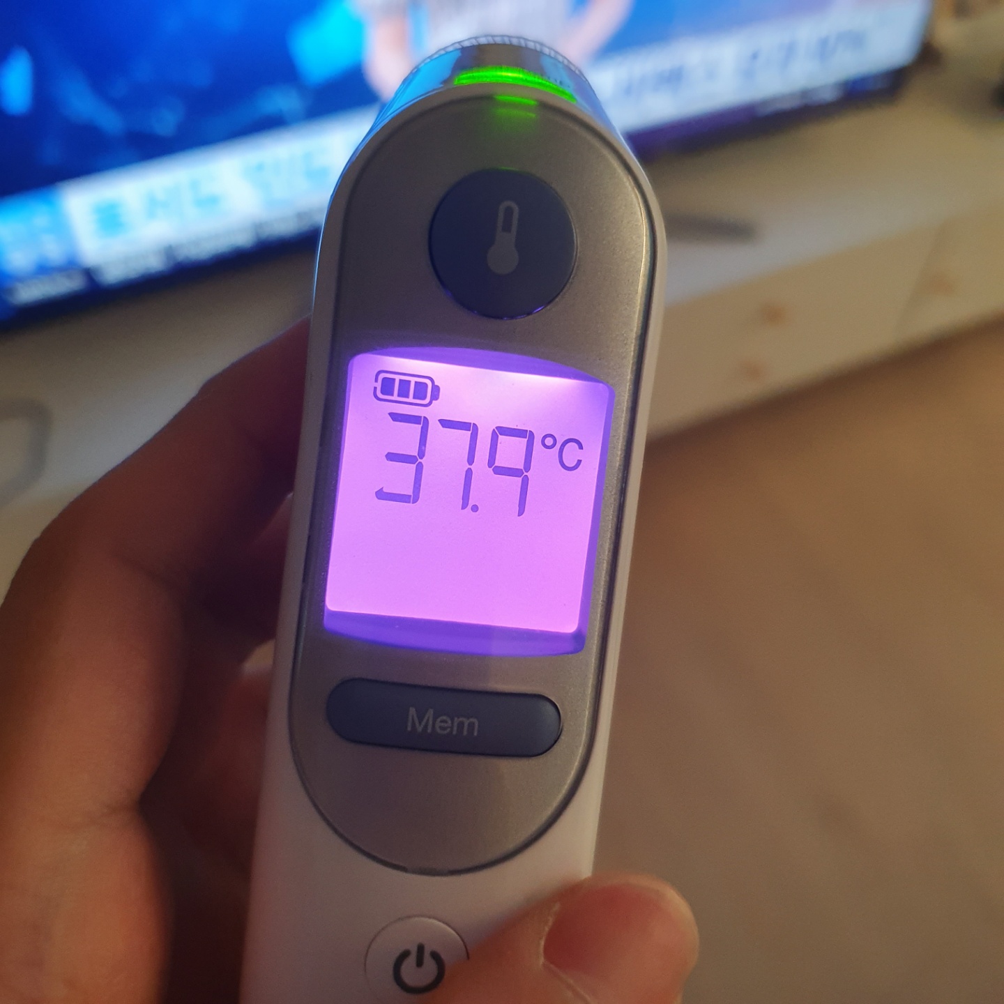 접종 후 30분 뒤 집에 도착하여 체온을 측정했더니 37.8도가 나왔고, 접종 부위에 물이 들어가지 않게 씻고 난 후엔 열이 37.3도로 약간 내려갔습니다.