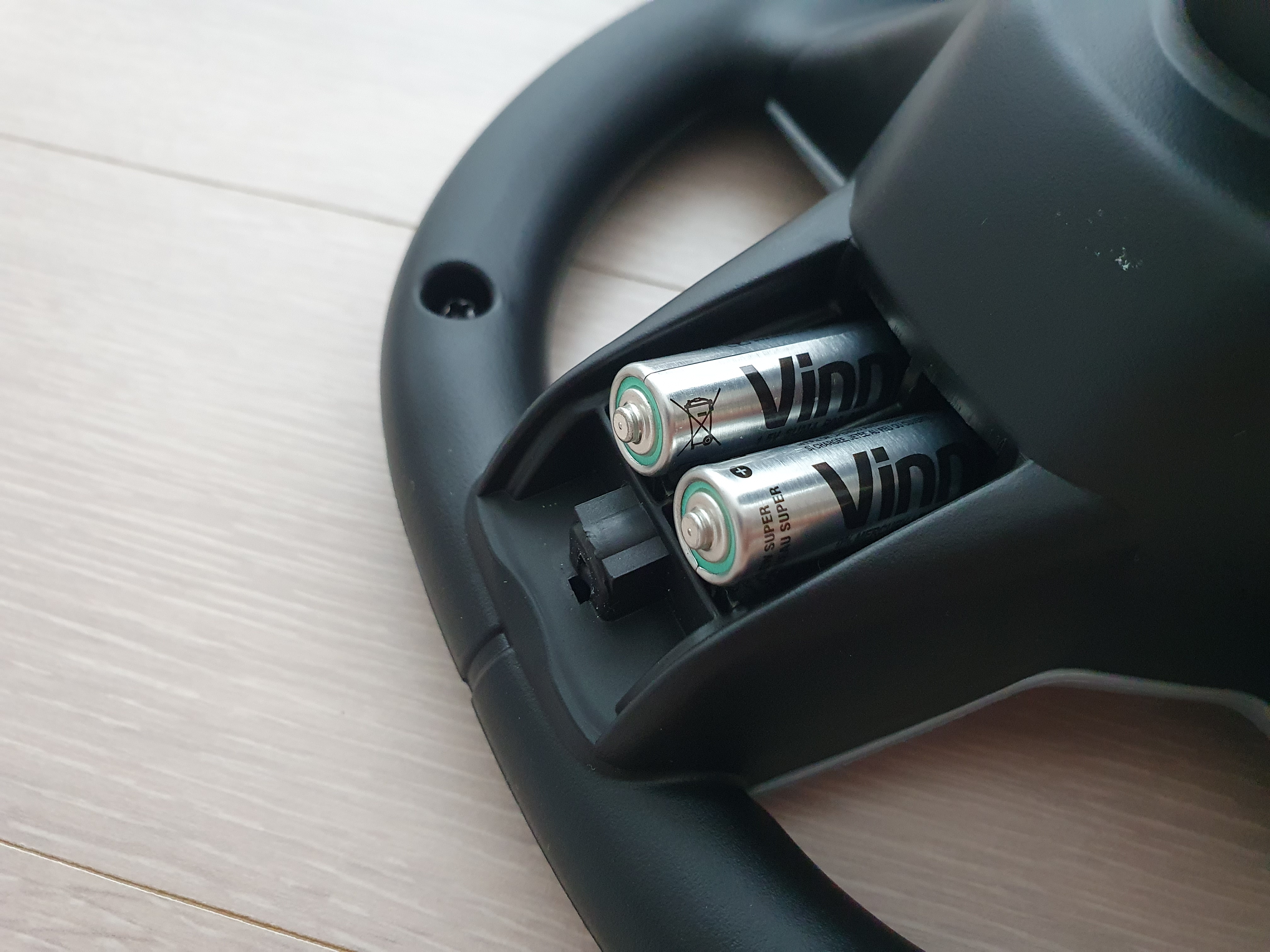 핸들 뒷면에는 AAA 건전지 2개가 들어가는 곳이 있는데요, 이 건전지를 통해 혼(클랙슨)이 작동은 하는데, 소리가 제법 싼티납니다.
