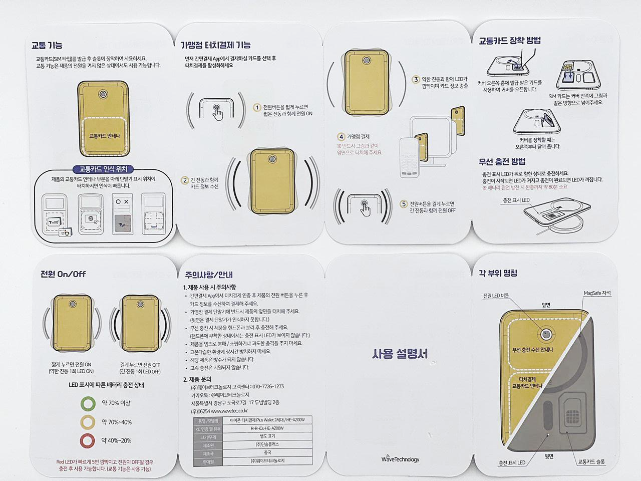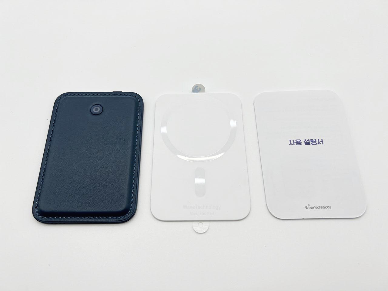 패키지는 터치결제 월렛 2세대 본체, 맥세이프 미지원 기기를 위한 자석패드, 사용 설명서로 구성되어 있습니다.