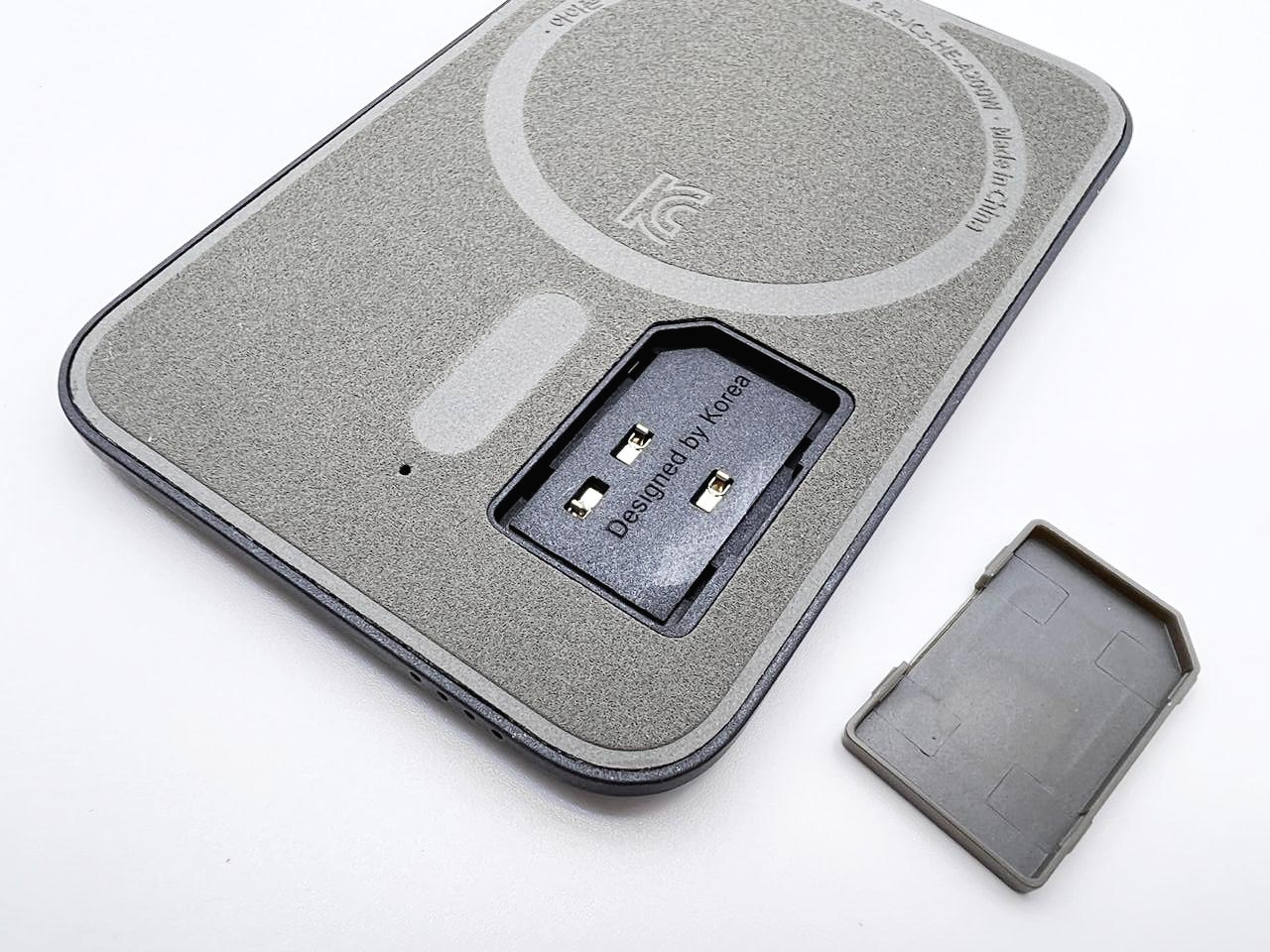 뒷면 하단에는 교통카드 기능을 위한 유심 트레이가 있습니다. 신한카드사에서 유심을 발급해야 한다고 하는데, 교통카드 기능은 서울/경기/인천 지역만 사용 가능합니다.